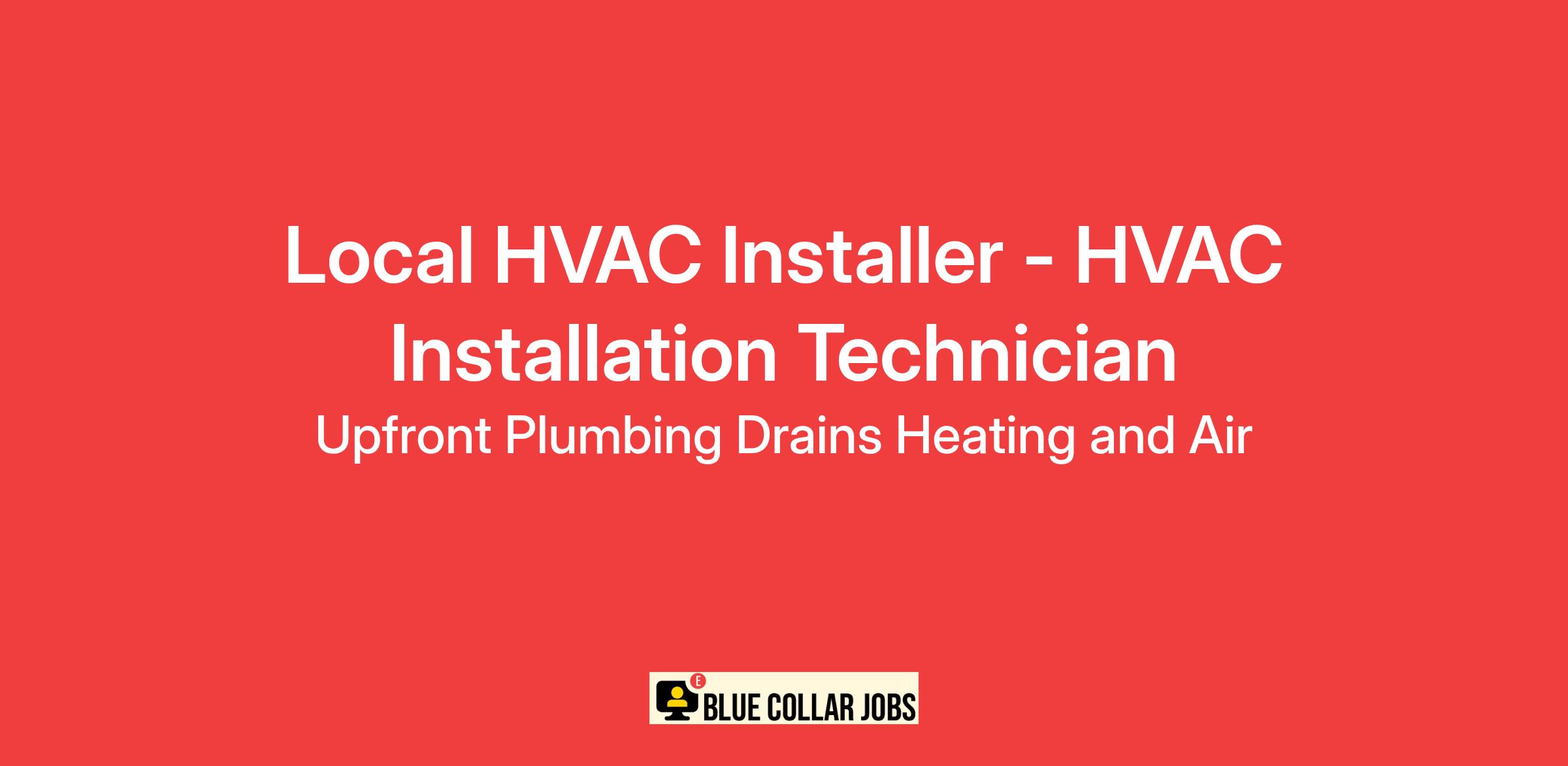 Looking for an exciting opportunity in the heating and air conditioning industry? Upfront Plumbing Drains Heating and Air in West Jordan, UT is currently hiring for a full-time Local HVAC Installer - HVAC Installation Technician to install, maintain, and repair heating and cooling systems. This role also provides estimates and ensures customer satisfaction!