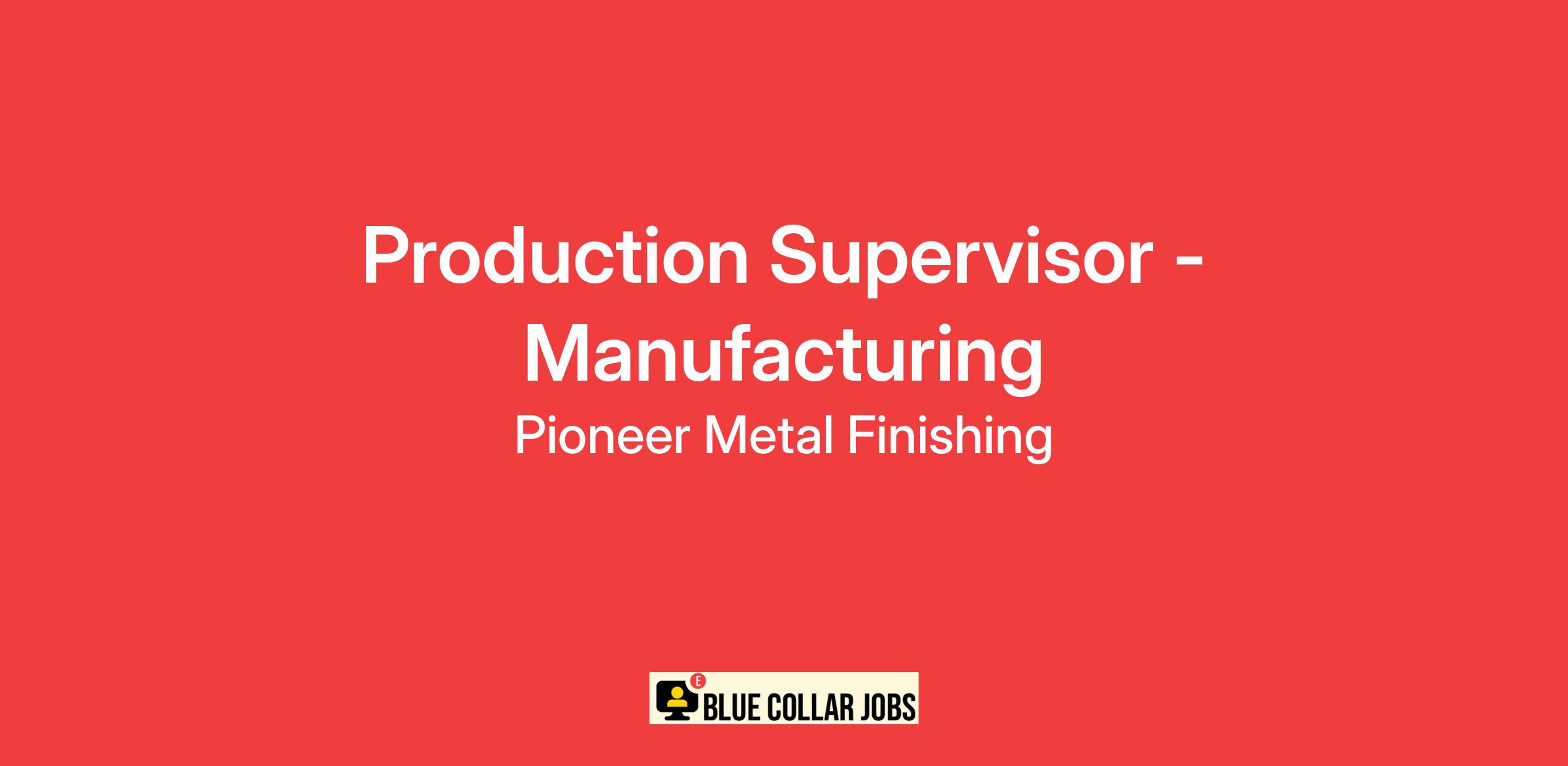 Production Supervisor - Manufacturing