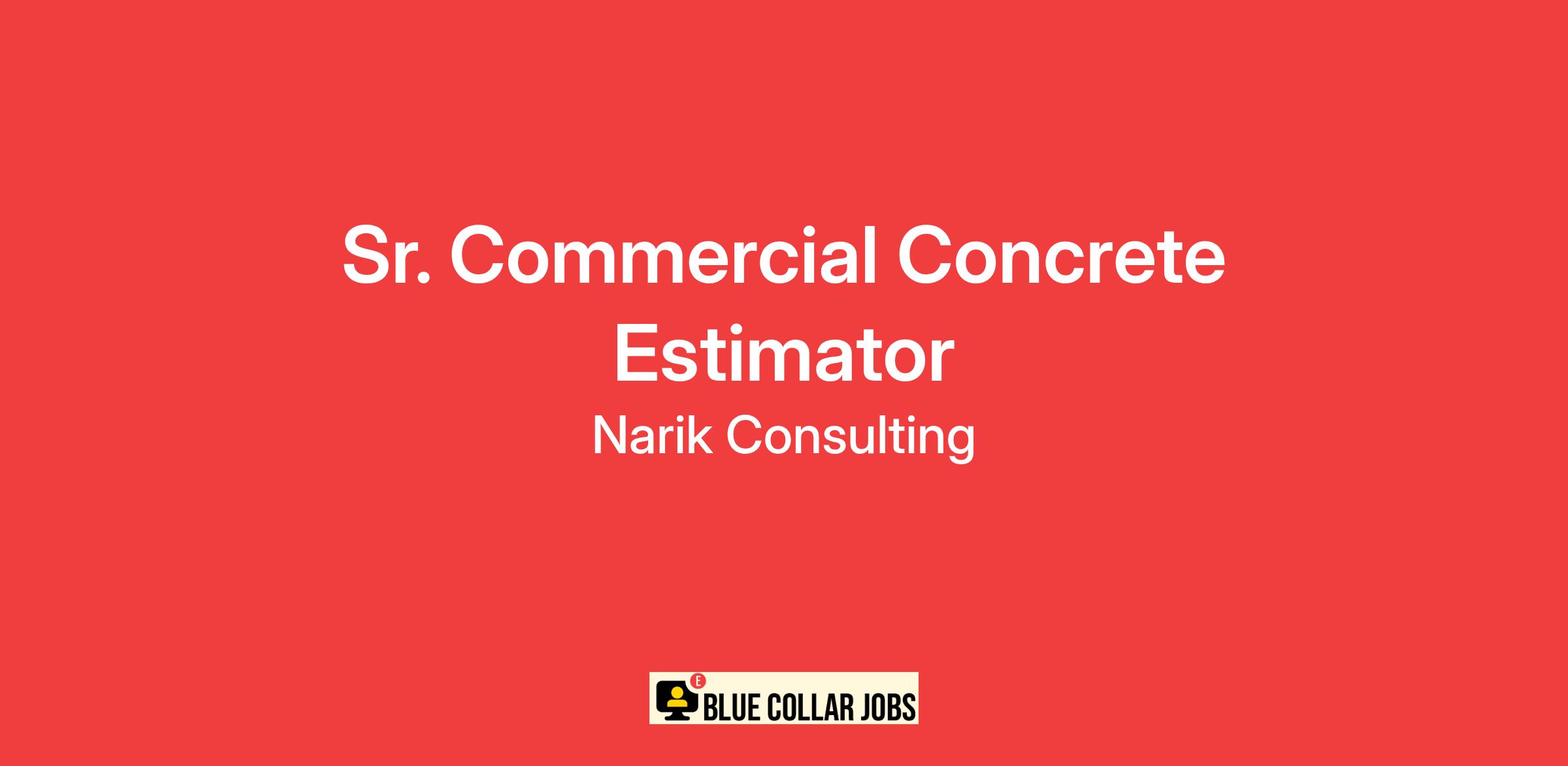 NARIK CONSULTING, LLC is representing a leading construction company specializing in commercial concrete projects. We are seeking a highly skilled and experienced Sr. Commercial Concrete Estimator to join our team. This is a full-time position with a competitive salary and benefits package.
